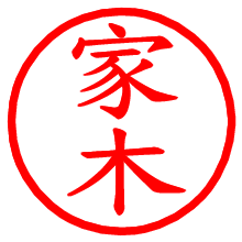 [朱肉の色]を選び、入力窓に“家木”と入力して[生成]ボタンを押すと、印影が更新され、リンクから電子印鑑(デジタル印影)がダウンロードできます。 電子印鑑「家木」の作り方文字表示が変なときや、文字バランスが悪いときは[字形切替]のチェックボックスでON/OFFを切り替え[生成]しなおしてください。 生成される画像は通常の印影「家木.png」と、にじみを表現した少し太めの印影「家木B.png」の背面透過PNG形式2種と、鮮明なPDF形式の印影「家木.pdf」の計3種類です。 朱肉の微妙な色の違いを7色で表現しました。デフォルト(左端)は、JISが定めた朱肉の色のマンセル値(7.5R 5/14)をRGB値(217,66,54)に変換したものになっています。 「電子透かし」にチェックを入れて[生成]ボタンを押すと、タイムスタンプを電子透かしとして埋め込んだセキュアな電子印鑑が作れます。詳細は別ページの「タイムスタンプと電子透かし」でご覧ください。 家木さんの日付印が作れます。「日付スタンプメーカー」は、社内向けの書類に利用されることの多い日付印(データ印)が無料で作れるWebアプリケーションです。中段に日付が入り、上段と下段は、ともに8文字まで文字が入ります。 ![]() 古代文字で落款印が作れます。「落款スタンプメーカー」で作品を引き立たせる落款印が作れます。
