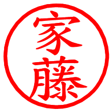 [朱肉の色]を選び、入力窓に“家藤”と入力して[生成]ボタンを押すと、印影が更新され、リンクから電子印鑑(デジタル印影)がダウンロードできます。 電子印鑑「家藤」の作り方文字表示が変なときや、文字バランスが悪いときは[字形切替]のチェックボックスでON/OFFを切り替え[生成]しなおしてください。 生成される画像は通常の印影「家藤.png」と、にじみを表現した少し太めの印影「家藤B.png」の背面透過PNG形式2種と、鮮明なPDF形式の印影「家藤.pdf」の計3種類です。 朱肉の微妙な色の違いを7色で表現しました。デフォルト(左端)は、JISが定めた朱肉の色のマンセル値(7.5R 5/14)をRGB値(217,66,54)に変換したものになっています。 「電子透かし」にチェックを入れて[生成]ボタンを押すと、タイムスタンプを電子透かしとして埋め込んだセキュアな電子印鑑が作れます。詳細は別ページの「タイムスタンプと電子透かし」でご覧ください。 家藤さんの日付印が作れます。「日付スタンプメーカー」は、社内向けの書類に利用されることの多い日付印(データ印)が無料で作れるWebアプリケーションです。中段に日付が入り、上段と下段は、ともに8文字まで文字が入ります。 ![]() 古代文字で落款印が作れます。「落款スタンプメーカー」で作品を引き立たせる落款印が作れます。