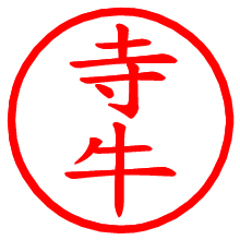 [朱肉の色]を選び、入力窓に“寺牛”と入力して[生成]ボタンを押すと、印影が更新され、リンクから電子印鑑(デジタル印影)がダウンロードできます。 電子印鑑「寺牛」の作り方文字表示が変なときや、文字バランスが悪いときは[字形切替]のチェックボックスでON/OFFを切り替え[生成]しなおしてください。 生成される画像は通常の印影「寺牛.png」と、にじみを表現した少し太めの印影「寺牛B.png」の背面透過PNG形式2種と、鮮明なPDF形式の印影「寺牛.pdf」の計3種類です。 朱肉の微妙な色の違いを7色で表現しました。デフォルト(左端)は、JISが定めた朱肉の色のマンセル値(7.5R 5/14)をRGB値(217,66,54)に変換したものになっています。 「電子透かし」にチェックを入れて[生成]ボタンを押すと、タイムスタンプを電子透かしとして埋め込んだセキュアな電子印鑑が作れます。詳細は別ページの「タイムスタンプと電子透かし」でご覧ください。 寺牛さんの日付印が作れます。「日付スタンプメーカー」は、社内向けの書類に利用されることの多い日付印(データ印)が無料で作れるWebアプリケーションです。中段に日付が入り、上段と下段は、ともに8文字まで文字が入ります。 ![]() 古代文字で落款印が作れます。「落款スタンプメーカー」で作品を引き立たせる落款印が作れます。