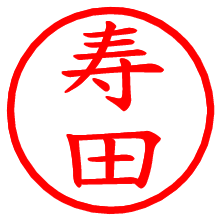 [朱肉の色]を選び、入力窓に“寿田”と入力して[生成]ボタンを押すと、印影が更新され、リンクから電子印鑑(デジタル印影)がダウンロードできます。 電子印鑑「寿田」の作り方文字表示が変なときや、文字バランスが悪いときは[字形切替]のチェックボックスでON/OFFを切り替え[生成]しなおしてください。 生成される画像は通常の印影「寿田.png」と、にじみを表現した少し太めの印影「寿田B.png」の背面透過PNG形式2種と、鮮明なPDF形式の印影「寿田.pdf」の計3種類です。 朱肉の微妙な色の違いを7色で表現しました。デフォルト(左端)は、JISが定めた朱肉の色のマンセル値(7.5R 5/14)をRGB値(217,66,54)に変換したものになっています。 「電子透かし」にチェックを入れて[生成]ボタンを押すと、タイムスタンプを電子透かしとして埋め込んだセキュアな電子印鑑が作れます。詳細は別ページの「タイムスタンプと電子透かし」でご覧ください。 寿田さんの日付印が作れます。「日付スタンプメーカー」は、社内向けの書類に利用されることの多い日付印(データ印)が無料で作れるWebアプリケーションです。中段に日付が入り、上段と下段は、ともに8文字まで文字が入ります。 ![]() 古代文字で落款印が作れます。「落款スタンプメーカー」で作品を引き立たせる落款印が作れます。
