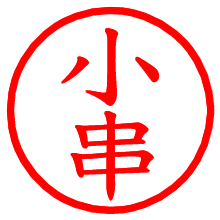 [朱肉の色]を選び、入力窓に“小串”と入力して[生成]ボタンを押すと、印影が更新され、リンクから電子印鑑(デジタル印影)がダウンロードできます。 電子印鑑「小串」の作り方文字表示が変なときや、文字バランスが悪いときは[字形切替]のチェックボックスでON/OFFを切り替え[生成]しなおしてください。 生成される画像は通常の印影「小串.png」と、にじみを表現した少し太めの印影「小串B.png」の背面透過PNG形式2種と、鮮明なPDF形式の印影「小串.pdf」の計3種類です。 朱肉の微妙な色の違いを7色で表現しました。デフォルト(左端)は、JISが定めた朱肉の色のマンセル値(7.5R 5/14)をRGB値(217,66,54)に変換したものになっています。 「電子透かし」にチェックを入れて[生成]ボタンを押すと、タイムスタンプを電子透かしとして埋め込んだセキュアな電子印鑑が作れます。詳細は別ページの「タイムスタンプと電子透かし」でご覧ください。 小串さんの日付印が作れます。「日付スタンプメーカー」は、社内向けの書類に利用されることの多い日付印(データ印)が無料で作れるWebアプリケーションです。中段に日付が入り、上段と下段は、ともに8文字まで文字が入ります。 ![]() 古代文字で落款印が作れます。「落款スタンプメーカー」で作品を引き立たせる落款印が作れます。