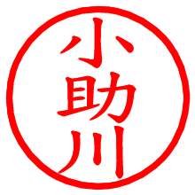 [朱肉の色]を選び、入力窓に“小助川”と入力して[生成]ボタンを押すと、印影が更新され、リンクから電子印鑑(デジタル印影)がダウンロードできます。 電子印鑑「小助川」の作り方文字表示が変なときや、文字バランスが悪いときは[字形切替]のチェックボックスでON/OFFを切り替え[生成]しなおしてください。 生成される画像は通常の印影「小助川.png」と、にじみを表現した少し太めの印影「小助川B.png」の背面透過PNG形式2種と、鮮明なPDF形式の印影「小助川.pdf」の計3種類です。 朱肉の微妙な色の違いを7色で表現しました。デフォルト(左端)は、JISが定めた朱肉の色のマンセル値(7.5R 5/14)をRGB値(217,66,54)に変換したものになっています。 「電子透かし」にチェックを入れて[生成]ボタンを押すと、タイムスタンプを電子透かしとして埋め込んだセキュアな電子印鑑が作れます。詳細は別ページの「タイムスタンプと電子透かし」でご覧ください。 小助川さんの日付印が作れます。「日付スタンプメーカー」は、社内向けの書類に利用されることの多い日付印(データ印)が無料で作れるWebアプリケーションです。中段に日付が入り、上段と下段は、ともに8文字まで文字が入ります。 ![]() 古代文字で落款印が作れます。「落款スタンプメーカー」で作品を引き立たせる落款印が作れます。