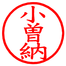 [朱肉の色]を選び、入力窓に“小曽納”と入力して[生成]ボタンを押すと、印影が更新され、リンクから電子印鑑(デジタル印影)がダウンロードできます。 電子印鑑「小曽納」の作り方文字表示が変なときや、文字バランスが悪いときは[字形切替]のチェックボックスでON/OFFを切り替え[生成]しなおしてください。 生成される画像は通常の印影「小曽納.png」と、にじみを表現した少し太めの印影「小曽納B.png」の背面透過PNG形式2種と、鮮明なPDF形式の印影「小曽納.pdf」の計3種類です。 朱肉の微妙な色の違いを7色で表現しました。デフォルト(左端)は、JISが定めた朱肉の色のマンセル値(7.5R 5/14)をRGB値(217,66,54)に変換したものになっています。 「電子透かし」にチェックを入れて[生成]ボタンを押すと、タイムスタンプを電子透かしとして埋め込んだセキュアな電子印鑑が作れます。詳細は別ページの「タイムスタンプと電子透かし」でご覧ください。 小曽納さんの日付印が作れます。「日付スタンプメーカー」は、社内向けの書類に利用されることの多い日付印(データ印)が無料で作れるWebアプリケーションです。中段に日付が入り、上段と下段は、ともに8文字まで文字が入ります。 ![]() 古代文字で落款印が作れます。「落款スタンプメーカー」で作品を引き立たせる落款印が作れます。
