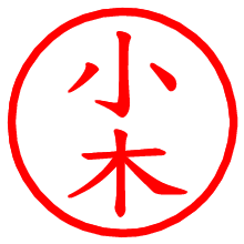 [朱肉の色]を選び、入力窓に“小木”と入力して[生成]ボタンを押すと、印影が更新され、リンクから電子印鑑(デジタル印影)がダウンロードできます。 電子印鑑「小木」の作り方文字表示が変なときや、文字バランスが悪いときは[字形切替]のチェックボックスでON/OFFを切り替え[生成]しなおしてください。 生成される画像は通常の印影「小木.png」と、にじみを表現した少し太めの印影「小木B.png」の背面透過PNG形式2種と、鮮明なPDF形式の印影「小木.pdf」の計3種類です。 朱肉の微妙な色の違いを7色で表現しました。デフォルト(左端)は、JISが定めた朱肉の色のマンセル値(7.5R 5/14)をRGB値(217,66,54)に変換したものになっています。 「電子透かし」にチェックを入れて[生成]ボタンを押すと、タイムスタンプを透かしとして埋め込んだセキュアな電子印鑑が作れます。詳細は別ページの「電子透かしとタイムスタンプ」でご覧ください。 小木さんの日付印が作れます。「日付スタンプメーカー」は、社内向けの書類に利用されることの多い日付印(データ印)が無料で作れるWebアプリケーションです。中段に日付が入り、上段と下段は、ともに8文字まで文字が入ります。 ![]() 古代文字で落款印が作れます。「落款スタンプメーカー」で作品を引き立たせる落款印が作れます。