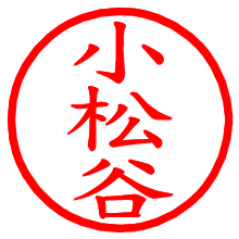 [朱肉の色]を選び、入力窓に“小松谷”と入力して[生成]ボタンを押すと、印影が更新され、リンクから電子印鑑(デジタル印影)がダウンロードできます。 電子印鑑「小松谷」の作り方文字表示が変なときや、文字バランスが悪いときは[字形切替]のチェックボックスでON/OFFを切り替え[生成]しなおしてください。 生成される画像は通常の印影「小松谷.png」と、にじみを表現した少し太めの印影「小松谷B.png」の背面透過PNG形式2種と、鮮明なPDF形式の印影「小松谷.pdf」の計3種類です。 朱肉の微妙な色の違いを7色で表現しました。デフォルト(左端)は、JISが定めた朱肉の色のマンセル値(7.5R 5/14)をRGB値(217,66,54)に変換したものになっています。 「電子透かし」にチェックを入れて[生成]ボタンを押すと、タイムスタンプを電子透かしとして埋め込んだセキュアな電子印鑑が作れます。詳細は別ページの「タイムスタンプと電子透かし」でご覧ください。 小松谷さんの日付印が作れます。「日付スタンプメーカー」は、社内向けの書類に利用されることの多い日付印(データ印)が無料で作れるWebアプリケーションです。中段に日付が入り、上段と下段は、ともに8文字まで文字が入ります。 ![]() 古代文字で落款印が作れます。「落款スタンプメーカー」で作品を引き立たせる落款印が作れます。