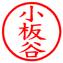 [朱肉の色]を選び、入力窓に“小板谷”と入力して[生成]ボタンを押すと、印影が更新され、リンクから電子印鑑(デジタル印影)がダウンロードできます。 電子印鑑「小板谷」の作り方文字表示が変なときや、文字バランスが悪いときは[字形切替]のチェックボックスでON/OFFを切り替え[生成]しなおしてください。 生成される画像は通常の印影「小板谷.png」と、にじみを表現した少し太めの印影「小板谷B.png」の背面透過PNG形式2種と、鮮明なPDF形式の印影「小板谷.pdf」の計3種類です。 朱肉の微妙な色の違いを7色で表現しました。デフォルト(左端)は、JISが定めた朱肉の色のマンセル値(7.5R 5/14)をRGB値(217,66,54)に変換したものになっています。 「電子透かし」にチェックを入れて[生成]ボタンを押すと、タイムスタンプを電子透かしとして埋め込んだセキュアな電子印鑑が作れます。詳細は別ページの「タイムスタンプと電子透かし」でご覧ください。 小板谷さんの日付印が作れます。「日付スタンプメーカー」は、社内向けの書類に利用されることの多い日付印(データ印)が無料で作れるWebアプリケーションです。中段に日付が入り、上段と下段は、ともに8文字まで文字が入ります。 ![]() 古代文字で落款印が作れます。「落款スタンプメーカー」で作品を引き立たせる落款印が作れます。