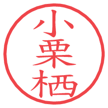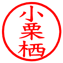 [朱肉の色]を選び、入力窓に“小栗栖”と入力して[生成]ボタンを押すと、印影が更新され、リンクから電子印鑑(デジタル印影)がダウンロードできます。 電子印鑑「小栗栖」の作り方文字表示が変なときや、文字バランスが悪いときは[字形切替]のチェックボックスでON/OFFを切り替え[生成]しなおしてください。 生成される画像は通常の印影「小栗栖.png」と、にじみを表現した少し太めの印影「小栗栖B.png」の背面透過PNG形式2種と、鮮明なPDF形式の印影「小栗栖.pdf」の計3種類です。 朱肉の微妙な色の違いを7色で表現しました。デフォルト(左端)は、JISが定めた朱肉の色のマンセル値(7.5R 5/14)をRGB値(217,66,54)に変換したものになっています。 「電子透かし」にチェックを入れて[生成]ボタンを押すと、タイムスタンプを電子透かしとして埋め込んだセキュアな電子印鑑が作れます。詳細は別ページの「タイムスタンプと電子透かし」でご覧ください。 小栗栖さんの日付印が作れます。「日付スタンプメーカー」は、社内向けの書類に利用されることの多い日付印(データ印)が無料で作れるWebアプリケーションです。中段に日付が入り、上段と下段は、ともに8文字まで文字が入ります。 ![]() 古代文字で落款印が作れます。「落款スタンプメーカー」で作品を引き立たせる落款印が作れます。