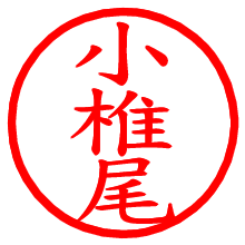 [朱肉の色]を選び、入力窓に“小椎尾”と入力して[生成]ボタンを押すと、印影が更新され、リンクから電子印鑑(デジタル印影)がダウンロードできます。 電子印鑑「小椎尾」の作り方文字表示が変なときや、文字バランスが悪いときは[字形切替]のチェックボックスでON/OFFを切り替え[生成]しなおしてください。 生成される画像は通常の印影「小椎尾.png」と、にじみを表現した少し太めの印影「小椎尾B.png」の背面透過PNG形式2種と、鮮明なPDF形式の印影「小椎尾.pdf」の計3種類です。 朱肉の微妙な色の違いを7色で表現しました。デフォルト(左端)は、JISが定めた朱肉の色のマンセル値(7.5R 5/14)をRGB値(217,66,54)に変換したものになっています。 「電子透かし」にチェックを入れて[生成]ボタンを押すと、タイムスタンプを電子透かしとして埋め込んだセキュアな電子印鑑が作れます。詳細は別ページの「タイムスタンプと電子透かし」でご覧ください。 小椎尾さんの日付印が作れます。「日付スタンプメーカー」は、社内向けの書類に利用されることの多い日付印(データ印)が無料で作れるWebアプリケーションです。中段に日付が入り、上段と下段は、ともに8文字まで文字が入ります。 ![]() 古代文字で落款印が作れます。「落款スタンプメーカー」で作品を引き立たせる落款印が作れます。