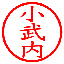 [朱肉の色]を選び、入力窓に“小武内”と入力して[生成]ボタンを押すと、印影が更新され、リンクから電子印鑑(デジタル印影)がダウンロードできます。 電子印鑑「小武内」の作り方文字表示が変なときや、文字バランスが悪いときは[字形切替]のチェックボックスでON/OFFを切り替え[生成]しなおしてください。 生成される画像は通常の印影「小武内.png」と、にじみを表現した少し太めの印影「小武内B.png」の背面透過PNG形式2種と、鮮明なPDF形式の印影「小武内.pdf」の計3種類です。 朱肉の微妙な色の違いを7色で表現しました。デフォルト(左端)は、JISが定めた朱肉の色のマンセル値(7.5R 5/14)をRGB値(217,66,54)に変換したものになっています。 「電子透かし」にチェックを入れて[生成]ボタンを押すと、タイムスタンプを電子透かしとして埋め込んだセキュアな電子印鑑が作れます。詳細は別ページの「タイムスタンプと電子透かし」でご覧ください。 小武内さんの日付印が作れます。「日付スタンプメーカー」は、社内向けの書類に利用されることの多い日付印(データ印)が無料で作れるWebアプリケーションです。中段に日付が入り、上段と下段は、ともに8文字まで文字が入ります。 ![]() 古代文字で落款印が作れます。「落款スタンプメーカー」で作品を引き立たせる落款印が作れます。