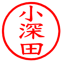 [朱肉の色]を選び、入力窓に“小深田”と入力して[生成]ボタンを押すと、印影が更新され、リンクから電子印鑑(デジタル印影)がダウンロードできます。 電子印鑑「小深田」の作り方文字表示が変なときや、文字バランスが悪いときは[字形切替]のチェックボックスでON/OFFを切り替え[生成]しなおしてください。 生成される画像は通常の印影「小深田.png」と、にじみを表現した少し太めの印影「小深田B.png」の背面透過PNG形式2種と、鮮明なPDF形式の印影「小深田.pdf」の計3種類です。 朱肉の微妙な色の違いを7色で表現しました。デフォルト(左端)は、JISが定めた朱肉の色のマンセル値(7.5R 5/14)をRGB値(217,66,54)に変換したものになっています。 「電子透かし」にチェックを入れて[生成]ボタンを押すと、タイムスタンプを電子透かしとして埋め込んだセキュアな電子印鑑が作れます。詳細は別ページの「タイムスタンプと電子透かし」でご覧ください。 小深田さんの日付印が作れます。「日付スタンプメーカー」は、社内向けの書類に利用されることの多い日付印(データ印)が無料で作れるWebアプリケーションです。中段に日付が入り、上段と下段は、ともに8文字まで文字が入ります。 ![]() 古代文字で落款印が作れます。「落款スタンプメーカー」で作品を引き立たせる落款印が作れます。