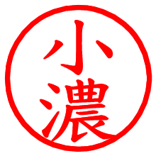 [朱肉の色]を選び、入力窓に“小濃”と入力して[生成]ボタンを押すと、印影が更新され、リンクから電子印鑑(デジタル印影)がダウンロードできます。 電子印鑑「小濃」の作り方文字表示が変なときや、文字バランスが悪いときは[字形切替]のチェックボックスでON/OFFを切り替え[生成]しなおしてください。 生成される画像は通常の印影「小濃.png」と、にじみを表現した少し太めの印影「小濃B.png」の背面透過PNG形式2種と、鮮明なPDF形式の印影「小濃.pdf」の計3種類です。 朱肉の微妙な色の違いを7色で表現しました。デフォルト(左端)は、JISが定めた朱肉の色のマンセル値(7.5R 5/14)をRGB値(217,66,54)に変換したものになっています。 「電子透かし」にチェックを入れて[生成]ボタンを押すと、タイムスタンプを電子透かしとして埋め込んだセキュアな電子印鑑が作れます。詳細は別ページの「タイムスタンプと電子透かし」でご覧ください。 小濃さんの日付印が作れます。「日付スタンプメーカー」は、社内向けの書類に利用されることの多い日付印(データ印)が無料で作れるWebアプリケーションです。中段に日付が入り、上段と下段は、ともに8文字まで文字が入ります。 ![]() 古代文字で落款印が作れます。「落款スタンプメーカー」で作品を引き立たせる落款印が作れます。