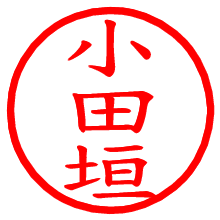 [朱肉の色]を選び、入力窓に“小田垣”と入力して[生成]ボタンを押すと、印影が更新され、リンクから電子印鑑(デジタル印影)がダウンロードできます。 電子印鑑「小田垣」の作り方文字表示が変なときや、文字バランスが悪いときは[字形切替]のチェックボックスでON/OFFを切り替え[生成]しなおしてください。 生成される画像は通常の印影「小田垣.png」と、にじみを表現した少し太めの印影「小田垣B.png」の背面透過PNG形式2種と、鮮明なPDF形式の印影「小田垣.pdf」の計3種類です。 朱肉の微妙な色の違いを7色で表現しました。デフォルト(左端)は、JISが定めた朱肉の色のマンセル値(7.5R 5/14)をRGB値(217,66,54)に変換したものになっています。 「電子透かし」にチェックを入れて[生成]ボタンを押すと、タイムスタンプを電子透かしとして埋め込んだセキュアな電子印鑑が作れます。詳細は別ページの「タイムスタンプと電子透かし」でご覧ください。 小田垣さんの日付印が作れます。「日付スタンプメーカー」は、社内向けの書類に利用されることの多い日付印(データ印)が無料で作れるWebアプリケーションです。中段に日付が入り、上段と下段は、ともに8文字まで文字が入ります。 ![]() 古代文字で落款印が作れます。「落款スタンプメーカー」で作品を引き立たせる落款印が作れます。