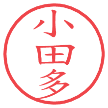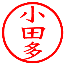 [朱肉の色]を選び、入力窓に“小田多”と入力して[生成]ボタンを押すと、印影が更新され、リンクから電子印鑑(デジタル印影)がダウンロードできます。 電子印鑑「小田多」の作り方文字表示が変なときや、文字バランスが悪いときは[字形切替]のチェックボックスでON/OFFを切り替え[生成]しなおしてください。 生成される画像は通常の印影「小田多.png」と、にじみを表現した少し太めの印影「小田多B.png」の背面透過PNG形式2種と、鮮明なPDF形式の印影「小田多.pdf」の計3種類です。 朱肉の微妙な色の違いを7色で表現しました。デフォルト(左端)は、JISが定めた朱肉の色のマンセル値(7.5R 5/14)をRGB値(217,66,54)に変換したものになっています。 「電子透かし」にチェックを入れて[生成]ボタンを押すと、タイムスタンプを電子透かしとして埋め込んだセキュアな電子印鑑が作れます。詳細は別ページの「タイムスタンプと電子透かし」でご覧ください。 小田多さんの日付印が作れます。「日付スタンプメーカー」は、社内向けの書類に利用されることの多い日付印(データ印)が無料で作れるWebアプリケーションです。中段に日付が入り、上段と下段は、ともに8文字まで文字が入ります。 ![]() 古代文字で落款印が作れます。「落款スタンプメーカー」で作品を引き立たせる落款印が作れます。