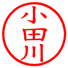 [朱肉の色]を選び、入力窓に“小田川”と入力して[生成]ボタンを押すと、印影が更新され、リンクから電子印鑑(デジタル印影)がダウンロードできます。 電子印鑑「小田川」の作り方文字表示が変なときや、文字バランスが悪いときは[字形切替]のチェックボックスでON/OFFを切り替え[生成]しなおしてください。 生成される画像は通常の印影「小田川.png」と、にじみを表現した少し太めの印影「小田川B.png」の背面透過PNG形式2種と、鮮明なPDF形式の印影「小田川.pdf」の計3種類です。 朱肉の微妙な色の違いを7色で表現しました。デフォルト(左端)は、JISが定めた朱肉の色のマンセル値(7.5R 5/14)をRGB値(217,66,54)に変換したものになっています。 「電子透かし」にチェックを入れて[生成]ボタンを押すと、タイムスタンプを透かしとして埋め込んだセキュアな電子印鑑が作れます。詳細は別ページの「電子透かしとタイムスタンプ」でご覧ください。 小田川さんの日付印が作れます。「日付スタンプメーカー」は、社内向けの書類に利用されることの多い日付印(データ印)が無料で作れるWebアプリケーションです。中段に日付が入り、上段と下段は、ともに8文字まで文字が入ります。 ![]() 古代文字で落款印が作れます。「落款スタンプメーカー」で作品を引き立たせる落款印が作れます。