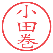[朱肉の色]を選び、入力窓に“小田巻”と入力して[生成]ボタンを押すと、印影が更新され、リンクから電子印鑑(デジタル印影)がダウンロードできます。 電子印鑑「小田巻」の作り方文字表示が変なときや、文字バランスが悪いときは[字形切替]のチェックボックスでON/OFFを切り替え[生成]しなおしてください。 生成される画像は通常の印影「小田巻.png」と、にじみを表現した少し太めの印影「小田巻B.png」の背面透過PNG形式2種と、鮮明なPDF形式の印影「小田巻.pdf」の計3種類です。 朱肉の微妙な色の違いを7色で表現しました。デフォルト(左端)は、JISが定めた朱肉の色のマンセル値(7.5R 5/14)をRGB値(217,66,54)に変換したものになっています。 「電子透かし」にチェックを入れて[生成]ボタンを押すと、タイムスタンプを電子透かしとして埋め込んだセキュアな電子印鑑が作れます。詳細は別ページの「タイムスタンプと電子透かし」でご覧ください。 小田巻さんの日付印が作れます。「日付スタンプメーカー」は、社内向けの書類に利用されることの多い日付印(データ印)が無料で作れるWebアプリケーションです。中段に日付が入り、上段と下段は、ともに8文字まで文字が入ります。 ![]() 古代文字で落款印が作れます。「落款スタンプメーカー」で作品を引き立たせる落款印が作れます。