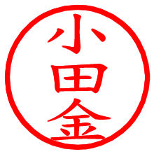 [朱肉の色]を選び、入力窓に“小田金”と入力して[生成]ボタンを押すと、印影が更新され、リンクから電子印鑑(デジタル印影)がダウンロードできます。 電子印鑑「小田金」の作り方文字表示が変なときや、文字バランスが悪いときは[字形切替]のチェックボックスでON/OFFを切り替え[生成]しなおしてください。 生成される画像は通常の印影「小田金.png」と、にじみを表現した少し太めの印影「小田金B.png」の背面透過PNG形式2種と、鮮明なPDF形式の印影「小田金.pdf」の計3種類です。 朱肉の微妙な色の違いを7色で表現しました。デフォルト(左端)は、JISが定めた朱肉の色のマンセル値(7.5R 5/14)をRGB値(217,66,54)に変換したものになっています。 「電子透かし」にチェックを入れて[生成]ボタンを押すと、タイムスタンプを透かしとして埋め込んだセキュアな電子印鑑が作れます。詳細は別ページの「電子透かしとタイムスタンプ」でご覧ください。 小田金さんの日付印が作れます。「日付スタンプメーカー」は、社内向けの書類に利用されることの多い日付印(データ印)が無料で作れるWebアプリケーションです。中段に日付が入り、上段と下段は、ともに8文字まで文字が入ります。 ![]() 古代文字で落款印が作れます。「落款スタンプメーカー」で作品を引き立たせる落款印が作れます。