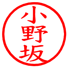 [朱肉の色]を選び、入力窓に“小野坂”と入力して[生成]ボタンを押すと、印影が更新され、リンクから電子印鑑(デジタル印影)がダウンロードできます。 電子印鑑「小野坂」の作り方文字表示が変なときや、文字バランスが悪いときは[字形切替]のチェックボックスでON/OFFを切り替え[生成]しなおしてください。 生成される画像は通常の印影「小野坂.png」と、にじみを表現した少し太めの印影「小野坂B.png」の背面透過PNG形式2種と、鮮明なPDF形式の印影「小野坂.pdf」の計3種類です。 朱肉の微妙な色の違いを7色で表現しました。デフォルト(左端)は、JISが定めた朱肉の色のマンセル値(7.5R 5/14)をRGB値(217,66,54)に変換したものになっています。 「電子透かし」にチェックを入れて[生成]ボタンを押すと、タイムスタンプを電子透かしとして埋め込んだセキュアな電子印鑑が作れます。詳細は別ページの「タイムスタンプと電子透かし」でご覧ください。 小野坂さんの日付印が作れます。「日付スタンプメーカー」は、社内向けの書類に利用されることの多い日付印(データ印)が無料で作れるWebアプリケーションです。中段に日付が入り、上段と下段は、ともに8文字まで文字が入ります。 ![]() 古代文字で落款印が作れます。「落款スタンプメーカー」で作品を引き立たせる落款印が作れます。