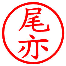 [朱肉の色]を選び、入力窓に“尾亦”と入力して[生成]ボタンを押すと、印影が更新され、リンクから電子印鑑(デジタル印影)がダウンロードできます。 電子印鑑「尾亦」の作り方文字表示が変なときや、文字バランスが悪いときは[字形切替]のチェックボックスでON/OFFを切り替え[生成]しなおしてください。 生成される画像は通常の印影「尾亦.png」と、にじみを表現した少し太めの印影「尾亦B.png」の背面透過PNG形式2種と、鮮明なPDF形式の印影「尾亦.pdf」の計3種類です。 朱肉の微妙な色の違いを7色で表現しました。デフォルト(左端)は、JISが定めた朱肉の色のマンセル値(7.5R 5/14)をRGB値(217,66,54)に変換したものになっています。 「電子透かし」にチェックを入れて[生成]ボタンを押すと、タイムスタンプを電子透かしとして埋め込んだセキュアな電子印鑑が作れます。詳細は別ページの「タイムスタンプと電子透かし」でご覧ください。 尾亦さんの日付印が作れます。「日付スタンプメーカー」は、社内向けの書類に利用されることの多い日付印(データ印)が無料で作れるWebアプリケーションです。中段に日付が入り、上段と下段は、ともに8文字まで文字が入ります。 ![]() 古代文字で落款印が作れます。「落款スタンプメーカー」で作品を引き立たせる落款印が作れます。