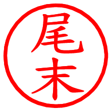 [朱肉の色]を選び、入力窓に“尾末”と入力して[生成]ボタンを押すと、印影が更新され、リンクから電子印鑑(デジタル印影)がダウンロードできます。 電子印鑑「尾末」の作り方文字表示が変なときや、文字バランスが悪いときは[字形切替]のチェックボックスでON/OFFを切り替え[生成]しなおしてください。 生成される画像は通常の印影「尾末.png」と、にじみを表現した少し太めの印影「尾末B.png」の背面透過PNG形式2種と、鮮明なPDF形式の印影「尾末.pdf」の計3種類です。 朱肉の微妙な色の違いを7色で表現しました。デフォルト(左端)は、JISが定めた朱肉の色のマンセル値(7.5R 5/14)をRGB値(217,66,54)に変換したものになっています。 「電子透かし」にチェックを入れて[生成]ボタンを押すと、タイムスタンプを電子透かしとして埋め込んだセキュアな電子印鑑が作れます。詳細は別ページの「タイムスタンプと電子透かし」でご覧ください。 尾末さんの日付印が作れます。「日付スタンプメーカー」は、社内向けの書類に利用されることの多い日付印(データ印)が無料で作れるWebアプリケーションです。中段に日付が入り、上段と下段は、ともに8文字まで文字が入ります。 ![]() 古代文字で落款印が作れます。「落款スタンプメーカー」で作品を引き立たせる落款印が作れます。