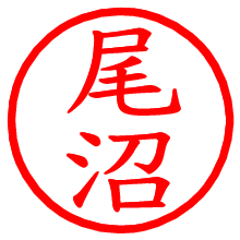 [朱肉の色]を選び、入力窓に“尾沼”と入力して[生成]ボタンを押すと、印影が更新され、リンクから電子印鑑(デジタル印影)がダウンロードできます。 電子印鑑「尾沼」の作り方文字表示が変なときや、文字バランスが悪いときは[字形切替]のチェックボックスでON/OFFを切り替え[生成]しなおしてください。 生成される画像は通常の印影「尾沼.png」と、にじみを表現した少し太めの印影「尾沼B.png」の背面透過PNG形式2種と、鮮明なPDF形式の印影「尾沼.pdf」の計3種類です。 朱肉の微妙な色の違いを7色で表現しました。デフォルト(左端)は、JISが定めた朱肉の色のマンセル値(7.5R 5/14)をRGB値(217,66,54)に変換したものになっています。 「電子透かし」にチェックを入れて[生成]ボタンを押すと、タイムスタンプを電子透かしとして埋め込んだセキュアな電子印鑑が作れます。詳細は別ページの「タイムスタンプと電子透かし」でご覧ください。 尾沼さんの日付印が作れます。「日付スタンプメーカー」は、社内向けの書類に利用されることの多い日付印(データ印)が無料で作れるWebアプリケーションです。中段に日付が入り、上段と下段は、ともに8文字まで文字が入ります。 ![]() 古代文字で落款印が作れます。「落款スタンプメーカー」で作品を引き立たせる落款印が作れます。