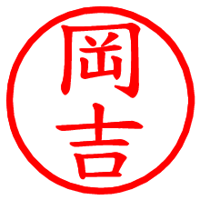 [朱肉の色]を選び、入力窓に“岡吉”と入力して[生成]ボタンを押すと、印影が更新され、リンクから電子印鑑(デジタル印影)がダウンロードできます。 電子印鑑「岡吉」の作り方文字表示が変なときや、文字バランスが悪いときは[字形切替]のチェックボックスでON/OFFを切り替え[生成]しなおしてください。 生成される画像は通常の印影「岡吉.png」と、にじみを表現した少し太めの印影「岡吉B.png」の背面透過PNG形式2種と、鮮明なPDF形式の印影「岡吉.pdf」の計3種類です。 朱肉の微妙な色の違いを7色で表現しました。デフォルト(左端)は、JISが定めた朱肉の色のマンセル値(7.5R 5/14)をRGB値(217,66,54)に変換したものになっています。 「電子透かし」にチェックを入れて[生成]ボタンを押すと、タイムスタンプを電子透かしとして埋め込んだセキュアな電子印鑑が作れます。詳細は別ページの「タイムスタンプと電子透かし」でご覧ください。 岡吉さんの日付印が作れます。「日付スタンプメーカー」は、社内向けの書類に利用されることの多い日付印(データ印)が無料で作れるWebアプリケーションです。中段に日付が入り、上段と下段は、ともに8文字まで文字が入ります。 ![]() 古代文字で落款印が作れます。「落款スタンプメーカー」で作品を引き立たせる落款印が作れます。