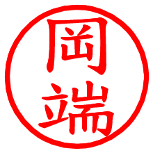 [朱肉の色]を選び、入力窓に“岡端”と入力して[生成]ボタンを押すと、印影が更新され、リンクから電子印鑑(デジタル印影)がダウンロードできます。 電子印鑑「岡端」の作り方文字表示が変なときや、文字バランスが悪いときは[字形切替]のチェックボックスでON/OFFを切り替え[生成]しなおしてください。 生成される画像は通常の印影「岡端.png」と、にじみを表現した少し太めの印影「岡端B.png」の背面透過PNG形式2種と、鮮明なPDF形式の印影「岡端.pdf」の計3種類です。 朱肉の微妙な色の違いを7色で表現しました。デフォルト(左端)は、JISが定めた朱肉の色のマンセル値(7.5R 5/14)をRGB値(217,66,54)に変換したものになっています。 「電子透かし」にチェックを入れて[生成]ボタンを押すと、タイムスタンプを電子透かしとして埋め込んだセキュアな電子印鑑が作れます。詳細は別ページの「タイムスタンプと電子透かし」でご覧ください。 岡端さんの日付印が作れます。「日付スタンプメーカー」は、社内向けの書類に利用されることの多い日付印(データ印)が無料で作れるWebアプリケーションです。中段に日付が入り、上段と下段は、ともに8文字まで文字が入ります。 ![]() 古代文字で落款印が作れます。「落款スタンプメーカー」で作品を引き立たせる落款印が作れます。