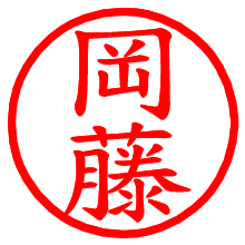 [朱肉の色]を選び、入力窓に“岡藤”と入力して[生成]ボタンを押すと、印影が更新され、リンクから電子印鑑(デジタル印影)がダウンロードできます。 電子印鑑「岡藤」の作り方文字表示が変なときや、文字バランスが悪いときは[字形切替]のチェックボックスでON/OFFを切り替え[生成]しなおしてください。 生成される画像は通常の印影「岡藤.png」と、にじみを表現した少し太めの印影「岡藤B.png」の背面透過PNG形式2種と、鮮明なPDF形式の印影「岡藤.pdf」の計3種類です。 朱肉の微妙な色の違いを7色で表現しました。デフォルト(左端)は、JISが定めた朱肉の色のマンセル値(7.5R 5/14)をRGB値(217,66,54)に変換したものになっています。 「電子透かし」にチェックを入れて[生成]ボタンを押すと、タイムスタンプを電子透かしとして埋め込んだセキュアな電子印鑑が作れます。詳細は別ページの「タイムスタンプと電子透かし」でご覧ください。 岡藤さんの日付印が作れます。「日付スタンプメーカー」は、社内向けの書類に利用されることの多い日付印(データ印)が無料で作れるWebアプリケーションです。中段に日付が入り、上段と下段は、ともに8文字まで文字が入ります。 ![]() 古代文字で落款印が作れます。「落款スタンプメーカー」で作品を引き立たせる落款印が作れます。