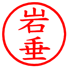[朱肉の色]を選び、入力窓に“岩垂”と入力して[生成]ボタンを押すと、印影が更新され、リンクから電子印鑑(デジタル印影)がダウンロードできます。 電子印鑑「岩垂」の作り方文字表示が変なときや、文字バランスが悪いときは[字形切替]のチェックボックスでON/OFFを切り替え[生成]しなおしてください。 生成される画像は通常の印影「岩垂.png」と、にじみを表現した少し太めの印影「岩垂B.png」の背面透過PNG形式2種と、鮮明なPDF形式の印影「岩垂.pdf」の計3種類です。 朱肉の微妙な色の違いを7色で表現しました。デフォルト(左端)は、JISが定めた朱肉の色のマンセル値(7.5R 5/14)をRGB値(217,66,54)に変換したものになっています。 「電子透かし」にチェックを入れて[生成]ボタンを押すと、タイムスタンプを電子透かしとして埋め込んだセキュアな電子印鑑が作れます。詳細は別ページの「タイムスタンプと電子透かし」でご覧ください。 岩垂さんの日付印が作れます。「日付スタンプメーカー」は、社内向けの書類に利用されることの多い日付印(データ印)が無料で作れるWebアプリケーションです。中段に日付が入り、上段と下段は、ともに8文字まで文字が入ります。 ![]() 古代文字で落款印が作れます。「落款スタンプメーカー」で作品を引き立たせる落款印が作れます。