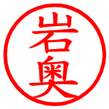 [朱肉の色]を選び、入力窓に“岩奥”と入力して[生成]ボタンを押すと、印影が更新され、リンクから電子印鑑(デジタル印影)がダウンロードできます。 電子印鑑「岩奥」の作り方文字表示が変なときや、文字バランスが悪いときは[字形切替]のチェックボックスでON/OFFを切り替え[生成]しなおしてください。 生成される画像は通常の印影「岩奥.png」と、にじみを表現した少し太めの印影「岩奥B.png」の背面透過PNG形式2種と、鮮明なPDF形式の印影「岩奥.pdf」の計3種類です。 朱肉の微妙な色の違いを7色で表現しました。デフォルト(左端)は、JISが定めた朱肉の色のマンセル値(7.5R 5/14)をRGB値(217,66,54)に変換したものになっています。 「電子透かし」にチェックを入れて[生成]ボタンを押すと、タイムスタンプを電子透かしとして埋め込んだセキュアな電子印鑑が作れます。詳細は別ページの「タイムスタンプと電子透かし」でご覧ください。 岩奥さんの日付印が作れます。「日付スタンプメーカー」は、社内向けの書類に利用されることの多い日付印(データ印)が無料で作れるWebアプリケーションです。中段に日付が入り、上段と下段は、ともに8文字まで文字が入ります。 ![]() 古代文字で落款印が作れます。「落款スタンプメーカー」で作品を引き立たせる落款印が作れます。