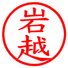 [朱肉の色]を選び、入力窓に“岩越”と入力して[生成]ボタンを押すと、印影が更新され、リンクから電子印鑑(デジタル印影)がダウンロードできます。 電子印鑑「岩越」の作り方文字表示が変なときや、文字バランスが悪いときは[字形切替]のチェックボックスでON/OFFを切り替え[生成]しなおしてください。 生成される画像は通常の印影「岩越.png」と、にじみを表現した少し太めの印影「岩越B.png」の背面透過PNG形式2種と、鮮明なPDF形式の印影「岩越.pdf」の計3種類です。 朱肉の微妙な色の違いを7色で表現しました。デフォルト(左端)は、JISが定めた朱肉の色のマンセル値(7.5R 5/14)をRGB値(217,66,54)に変換したものになっています。 「電子透かし」にチェックを入れて[生成]ボタンを押すと、タイムスタンプを電子透かしとして埋め込んだセキュアな電子印鑑が作れます。詳細は別ページの「タイムスタンプと電子透かし」でご覧ください。 岩越さんの日付印が作れます。「日付スタンプメーカー」は、社内向けの書類に利用されることの多い日付印(データ印)が無料で作れるWebアプリケーションです。中段に日付が入り、上段と下段は、ともに8文字まで文字が入ります。 ![]() 古代文字で落款印が作れます。「落款スタンプメーカー」で作品を引き立たせる落款印が作れます。