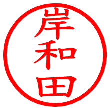 [朱肉の色]を選び、入力窓に“岸和田”と入力して[生成]ボタンを押すと、印影が更新され、リンクから電子印鑑(デジタル印影)がダウンロードできます。 電子印鑑「岸和田」の作り方文字表示が変なときや、文字バランスが悪いときは[字形切替]のチェックボックスでON/OFFを切り替え[生成]しなおしてください。 生成される画像は通常の印影「岸和田.png」と、にじみを表現した少し太めの印影「岸和田B.png」の背面透過PNG形式2種と、鮮明なPDF形式の印影「岸和田.pdf」の計3種類です。 朱肉の微妙な色の違いを7色で表現しました。デフォルト(左端)は、JISが定めた朱肉の色のマンセル値(7.5R 5/14)をRGB値(217,66,54)に変換したものになっています。 「電子透かし」にチェックを入れて[生成]ボタンを押すと、タイムスタンプを透かしとして埋め込んだセキュアな電子印鑑が作れます。詳細は別ページの「電子透かしとタイムスタンプ」でご覧ください。 岸和田さんの日付印が作れます。「日付スタンプメーカー」は、社内向けの書類に利用されることの多い日付印(データ印)が無料で作れるWebアプリケーションです。中段に日付が入り、上段と下段は、ともに8文字まで文字が入ります。 ![]() 古代文字で落款印が作れます。「落款スタンプメーカー」で作品を引き立たせる落款印が作れます。