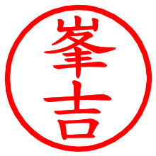 [朱肉の色]を選び、入力窓に“峯吉”と入力して[生成]ボタンを押すと、印影が更新され、リンクから電子印鑑(デジタル印影)がダウンロードできます。 電子印鑑「峯吉」の作り方文字表示が変なときや、文字バランスが悪いときは[字形切替]のチェックボックスでON/OFFを切り替え[生成]しなおしてください。 生成される画像は通常の印影「峯吉.png」と、にじみを表現した少し太めの印影「峯吉B.png」の背面透過PNG形式2種と、鮮明なPDF形式の印影「峯吉.pdf」の計3種類です。 朱肉の微妙な色の違いを7色で表現しました。デフォルト(左端)は、JISが定めた朱肉の色のマンセル値(7.5R 5/14)をRGB値(217,66,54)に変換したものになっています。 「電子透かし」にチェックを入れて[生成]ボタンを押すと、タイムスタンプを電子透かしとして埋め込んだセキュアな電子印鑑が作れます。詳細は別ページの「タイムスタンプと電子透かし」でご覧ください。 峯吉さんの日付印が作れます。「日付スタンプメーカー」は、社内向けの書類に利用されることの多い日付印(データ印)が無料で作れるWebアプリケーションです。中段に日付が入り、上段と下段は、ともに8文字まで文字が入ります。 ![]() 古代文字で落款印が作れます。「落款スタンプメーカー」で作品を引き立たせる落款印が作れます。