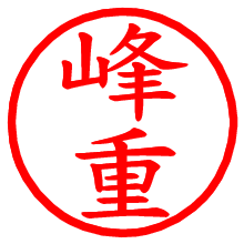 [朱肉の色]を選び、入力窓に“峰重”と入力して[生成]ボタンを押すと、印影が更新され、リンクから電子印鑑(デジタル印影)がダウンロードできます。 電子印鑑「峰重」の作り方文字表示が変なときや、文字バランスが悪いときは[字形切替]のチェックボックスでON/OFFを切り替え[生成]しなおしてください。 生成される画像は通常の印影「峰重.png」と、にじみを表現した少し太めの印影「峰重B.png」の背面透過PNG形式2種と、鮮明なPDF形式の印影「峰重.pdf」の計3種類です。 朱肉の微妙な色の違いを7色で表現しました。デフォルト(左端)は、JISが定めた朱肉の色のマンセル値(7.5R 5/14)をRGB値(217,66,54)に変換したものになっています。 「電子透かし」にチェックを入れて[生成]ボタンを押すと、タイムスタンプを電子透かしとして埋め込んだセキュアな電子印鑑が作れます。詳細は別ページの「タイムスタンプと電子透かし」でご覧ください。 峰重さんの日付印が作れます。「日付スタンプメーカー」は、社内向けの書類に利用されることの多い日付印(データ印)が無料で作れるWebアプリケーションです。中段に日付が入り、上段と下段は、ともに8文字まで文字が入ります。 ![]() 古代文字で落款印が作れます。「落款スタンプメーカー」で作品を引き立たせる落款印が作れます。