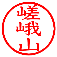 [朱肉の色]を選び、入力窓に“嵯峨山”と入力して[生成]ボタンを押すと、印影が更新され、リンクから電子印鑑(デジタル印影)がダウンロードできます。 電子印鑑「嵯峨山」の作り方文字表示が変なときや、文字バランスが悪いときは[字形切替]のチェックボックスでON/OFFを切り替え[生成]しなおしてください。 生成される画像は通常の印影「嵯峨山.png」と、にじみを表現した少し太めの印影「嵯峨山B.png」の背面透過PNG形式2種と、鮮明なPDF形式の印影「嵯峨山.pdf」の計3種類です。 朱肉の微妙な色の違いを7色で表現しました。デフォルト(左端)は、JISが定めた朱肉の色のマンセル値(7.5R 5/14)をRGB値(217,66,54)に変換したものになっています。 「電子透かし」にチェックを入れて[生成]ボタンを押すと、タイムスタンプを電子透かしとして埋め込んだセキュアな電子印鑑が作れます。詳細は別ページの「タイムスタンプと電子透かし」でご覧ください。 嵯峨山さんの日付印が作れます。「日付スタンプメーカー」は、社内向けの書類に利用されることの多い日付印(データ印)が無料で作れるWebアプリケーションです。中段に日付が入り、上段と下段は、ともに8文字まで文字が入ります。 ![]() 古代文字で落款印が作れます。「落款スタンプメーカー」で作品を引き立たせる落款印が作れます。