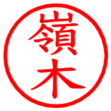 [朱肉の色]を選び、入力窓に“嶺木”と入力して[生成]ボタンを押すと、印影が更新され、リンクから電子印鑑(デジタル印影)がダウンロードできます。 電子印鑑「嶺木」の作り方文字表示が変なときや、文字バランスが悪いときは[字形切替]のチェックボックスでON/OFFを切り替え[生成]しなおしてください。 生成される画像は通常の印影「嶺木.png」と、にじみを表現した少し太めの印影「嶺木B.png」の背面透過PNG形式2種と、鮮明なPDF形式の印影「嶺木.pdf」の計3種類です。 朱肉の微妙な色の違いを7色で表現しました。デフォルト(左端)は、JISが定めた朱肉の色のマンセル値(7.5R 5/14)をRGB値(217,66,54)に変換したものになっています。 「電子透かし」にチェックを入れて[生成]ボタンを押すと、タイムスタンプを電子透かしとして埋め込んだセキュアな電子印鑑が作れます。詳細は別ページの「タイムスタンプと電子透かし」でご覧ください。 嶺木さんの日付印が作れます。「日付スタンプメーカー」は、社内向けの書類に利用されることの多い日付印(データ印)が無料で作れるWebアプリケーションです。中段に日付が入り、上段と下段は、ともに8文字まで文字が入ります。 ![]() 古代文字で落款印が作れます。「落款スタンプメーカー」で作品を引き立たせる落款印が作れます。
