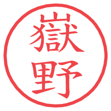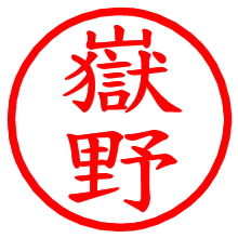 [朱肉の色]を選び、入力窓に“嶽野”と入力して[生成]ボタンを押すと、印影が更新され、リンクから電子印鑑(デジタル印影)がダウンロードできます。 電子印鑑「嶽野」の作り方文字表示が変なときや、文字バランスが悪いときは[字形切替]のチェックボックスでON/OFFを切り替え[生成]しなおしてください。 生成される画像は通常の印影「嶽野.png」と、にじみを表現した少し太めの印影「嶽野B.png」の背面透過PNG形式2種と、鮮明なPDF形式の印影「嶽野.pdf」の計3種類です。 朱肉の微妙な色の違いを7色で表現しました。デフォルト(左端)は、JISが定めた朱肉の色のマンセル値(7.5R 5/14)をRGB値(217,66,54)に変換したものになっています。 「電子透かし」にチェックを入れて[生成]ボタンを押すと、タイムスタンプを電子透かしとして埋め込んだセキュアな電子印鑑が作れます。詳細は別ページの「タイムスタンプと電子透かし」でご覧ください。 嶽野さんの日付印が作れます。「日付スタンプメーカー」は、社内向けの書類に利用されることの多い日付印(データ印)が無料で作れるWebアプリケーションです。中段に日付が入り、上段と下段は、ともに8文字まで文字が入ります。 ![]() 古代文字で落款印が作れます。「落款スタンプメーカー」で作品を引き立たせる落款印が作れます。