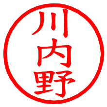 [朱肉の色]を選び、入力窓に“川内野”と入力して[生成]ボタンを押すと、印影が更新され、リンクから電子印鑑(デジタル印影)がダウンロードできます。 電子印鑑「川内野」の作り方文字表示が変なときや、文字バランスが悪いときは[字形切替]のチェックボックスでON/OFFを切り替え[生成]しなおしてください。 生成される画像は通常の印影「川内野.png」と、にじみを表現した少し太めの印影「川内野B.png」の背面透過PNG形式2種と、鮮明なPDF形式の印影「川内野.pdf」の計3種類です。 朱肉の微妙な色の違いを7色で表現しました。デフォルト(左端)は、JISが定めた朱肉の色のマンセル値(7.5R 5/14)をRGB値(217,66,54)に変換したものになっています。 「電子透かし」にチェックを入れて[生成]ボタンを押すと、タイムスタンプを電子透かしとして埋め込んだセキュアな電子印鑑が作れます。詳細は別ページの「タイムスタンプと電子透かし」でご覧ください。 川内野さんの日付印が作れます。「日付スタンプメーカー」は、社内向けの書類に利用されることの多い日付印(データ印)が無料で作れるWebアプリケーションです。中段に日付が入り、上段と下段は、ともに8文字まで文字が入ります。 ![]() 古代文字で落款印が作れます。「落款スタンプメーカー」で作品を引き立たせる落款印が作れます。