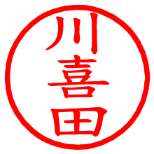 [朱肉の色]を選び、入力窓に“川喜田”と入力して[生成]ボタンを押すと、印影が更新され、リンクから電子印鑑(デジタル印影)がダウンロードできます。 電子印鑑「川喜田」の作り方文字表示が変なときや、文字バランスが悪いときは[字形切替]のチェックボックスでON/OFFを切り替え[生成]しなおしてください。 生成される画像は通常の印影「川喜田.png」と、にじみを表現した少し太めの印影「川喜田B.png」の背面透過PNG形式2種と、鮮明なPDF形式の印影「川喜田.pdf」の計3種類です。 朱肉の微妙な色の違いを7色で表現しました。デフォルト(左端)は、JISが定めた朱肉の色のマンセル値(7.5R 5/14)をRGB値(217,66,54)に変換したものになっています。 「電子透かし」にチェックを入れて[生成]ボタンを押すと、タイムスタンプを電子透かしとして埋め込んだセキュアな電子印鑑が作れます。詳細は別ページの「タイムスタンプと電子透かし」でご覧ください。 川喜田さんの日付印が作れます。「日付スタンプメーカー」は、社内向けの書類に利用されることの多い日付印(データ印)が無料で作れるWebアプリケーションです。中段に日付が入り、上段と下段は、ともに8文字まで文字が入ります。 ![]() 古代文字で落款印が作れます。「落款スタンプメーカー」で作品を引き立たせる落款印が作れます。