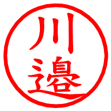 [朱肉の色]を選び、入力窓に“川邉”と入力して[生成]ボタンを押すと、印影が更新され、リンクから電子印鑑(デジタル印影)がダウンロードできます。 電子印鑑「川邉」の作り方文字表示が変なときや、文字バランスが悪いときは[字形切替]のチェックボックスでON/OFFを切り替え[生成]しなおしてください。 生成される画像は通常の印影「川邉.png」と、にじみを表現した少し太めの印影「川邉B.png」の背面透過PNG形式2種と、鮮明なPDF形式の印影「川邉.pdf」の計3種類です。 朱肉の微妙な色の違いを7色で表現しました。デフォルト(左端)は、JISが定めた朱肉の色のマンセル値(7.5R 5/14)をRGB値(217,66,54)に変換したものになっています。 「電子透かし」にチェックを入れて[生成]ボタンを押すと、タイムスタンプを電子透かしとして埋め込んだセキュアな電子印鑑が作れます。詳細は別ページの「タイムスタンプと電子透かし」でご覧ください。 川邉さんの日付印が作れます。「日付スタンプメーカー」は、社内向けの書類に利用されることの多い日付印(データ印)が無料で作れるWebアプリケーションです。中段に日付が入り、上段と下段は、ともに8文字まで文字が入ります。 ![]() 古代文字で落款印が作れます。「落款スタンプメーカー」で作品を引き立たせる落款印が作れます。