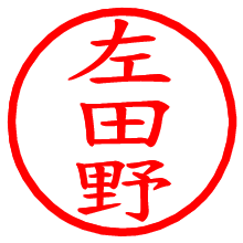 [朱肉の色]を選び、入力窓に“左田野”と入力して[生成]ボタンを押すと、印影が更新され、リンクから電子印鑑(デジタル印影)がダウンロードできます。 電子印鑑「左田野」の作り方文字表示が変なときや、文字バランスが悪いときは[字形切替]のチェックボックスでON/OFFを切り替え[生成]しなおしてください。 生成される画像は通常の印影「左田野.png」と、にじみを表現した少し太めの印影「左田野B.png」の背面透過PNG形式2種と、鮮明なPDF形式の印影「左田野.pdf」の計3種類です。 朱肉の微妙な色の違いを7色で表現しました。デフォルト(左端)は、JISが定めた朱肉の色のマンセル値(7.5R 5/14)をRGB値(217,66,54)に変換したものになっています。 「電子透かし」にチェックを入れて[生成]ボタンを押すと、タイムスタンプを電子透かしとして埋め込んだセキュアな電子印鑑が作れます。詳細は別ページの「タイムスタンプと電子透かし」でご覧ください。 左田野さんの日付印が作れます。「日付スタンプメーカー」は、社内向けの書類に利用されることの多い日付印(データ印)が無料で作れるWebアプリケーションです。中段に日付が入り、上段と下段は、ともに8文字まで文字が入ります。 ![]() 古代文字で落款印が作れます。「落款スタンプメーカー」で作品を引き立たせる落款印が作れます。