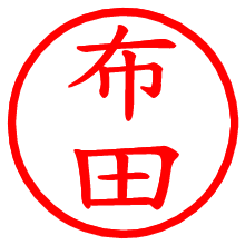 [朱肉の色]を選び、入力窓に“布田”と入力して[生成]ボタンを押すと、印影が更新され、リンクから電子印鑑(デジタル印影)がダウンロードできます。 電子印鑑「布田」の作り方文字表示が変なときや、文字バランスが悪いときは[字形切替]のチェックボックスでON/OFFを切り替え[生成]しなおしてください。 生成される画像は通常の印影「布田.png」と、にじみを表現した少し太めの印影「布田B.png」の背面透過PNG形式2種と、鮮明なPDF形式の印影「布田.pdf」の計3種類です。 朱肉の微妙な色の違いを7色で表現しました。デフォルト(左端)は、JISが定めた朱肉の色のマンセル値(7.5R 5/14)をRGB値(217,66,54)に変換したものになっています。 「電子透かし」にチェックを入れて[生成]ボタンを押すと、タイムスタンプを透かしとして埋め込んだセキュアな電子印鑑が作れます。詳細は別ページの「電子透かしとタイムスタンプ」でご覧ください。 布田さんの日付印が作れます。「日付スタンプメーカー」は、社内向けの書類に利用されることの多い日付印(データ印)が無料で作れるWebアプリケーションです。中段に日付が入り、上段と下段は、ともに8文字まで文字が入ります。 ![]() 古代文字で落款印が作れます。「落款スタンプメーカー」で作品を引き立たせる落款印が作れます。