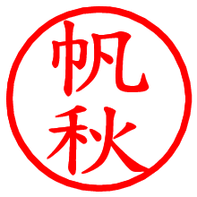 [朱肉の色]を選び、入力窓に“帆秋”と入力して[生成]ボタンを押すと、印影が更新され、リンクから電子印鑑(デジタル印影)がダウンロードできます。 電子印鑑「帆秋」の作り方文字表示が変なときや、文字バランスが悪いときは[字形切替]のチェックボックスでON/OFFを切り替え[生成]しなおしてください。 生成される画像は通常の印影「帆秋.png」と、にじみを表現した少し太めの印影「帆秋B.png」の背面透過PNG形式2種と、鮮明なPDF形式の印影「帆秋.pdf」の計3種類です。 朱肉の微妙な色の違いを7色で表現しました。デフォルト(左端)は、JISが定めた朱肉の色のマンセル値(7.5R 5/14)をRGB値(217,66,54)に変換したものになっています。 「電子透かし」にチェックを入れて[生成]ボタンを押すと、タイムスタンプを電子透かしとして埋め込んだセキュアな電子印鑑が作れます。詳細は別ページの「タイムスタンプと電子透かし」でご覧ください。 帆秋さんの日付印が作れます。「日付スタンプメーカー」は、社内向けの書類に利用されることの多い日付印(データ印)が無料で作れるWebアプリケーションです。中段に日付が入り、上段と下段は、ともに8文字まで文字が入ります。 ![]() 古代文字で落款印が作れます。「落款スタンプメーカー」で作品を引き立たせる落款印が作れます。