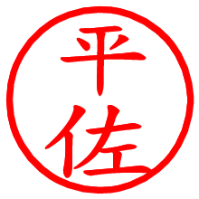 [朱肉の色]を選び、入力窓に“平佐”と入力して[生成]ボタンを押すと、印影が更新され、リンクから電子印鑑(デジタル印影)がダウンロードできます。 電子印鑑「平佐」の作り方文字表示が変なときや、文字バランスが悪いときは[字形切替]のチェックボックスでON/OFFを切り替え[生成]しなおしてください。 生成される画像は通常の印影「平佐.png」と、にじみを表現した少し太めの印影「平佐B.png」の背面透過PNG形式2種と、鮮明なPDF形式の印影「平佐.pdf」の計3種類です。 朱肉の微妙な色の違いを7色で表現しました。デフォルト(左端)は、JISが定めた朱肉の色のマンセル値(7.5R 5/14)をRGB値(217,66,54)に変換したものになっています。 「電子透かし」にチェックを入れて[生成]ボタンを押すと、タイムスタンプを電子透かしとして埋め込んだセキュアな電子印鑑が作れます。詳細は別ページの「タイムスタンプと電子透かし」でご覧ください。 平佐さんの日付印が作れます。「日付スタンプメーカー」は、社内向けの書類に利用されることの多い日付印(データ印)が無料で作れるWebアプリケーションです。中段に日付が入り、上段と下段は、ともに8文字まで文字が入ります。 ![]() 古代文字で落款印が作れます。「落款スタンプメーカー」で作品を引き立たせる落款印が作れます。