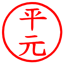 [朱肉の色]を選び、入力窓に“平元”と入力して[生成]ボタンを押すと、印影が更新され、リンクから電子印鑑(デジタル印影)がダウンロードできます。 電子印鑑「平元」の作り方文字表示が変なときや、文字バランスが悪いときは[字形切替]のチェックボックスでON/OFFを切り替え[生成]しなおしてください。 生成される画像は通常の印影「平元.png」と、にじみを表現した少し太めの印影「平元B.png」の背面透過PNG形式2種と、鮮明なPDF形式の印影「平元.pdf」の計3種類です。 朱肉の微妙な色の違いを7色で表現しました。デフォルト(左端)は、JISが定めた朱肉の色のマンセル値(7.5R 5/14)をRGB値(217,66,54)に変換したものになっています。 「電子透かし」にチェックを入れて[生成]ボタンを押すと、タイムスタンプを電子透かしとして埋め込んだセキュアな電子印鑑が作れます。詳細は別ページの「タイムスタンプと電子透かし」でご覧ください。 平元さんの日付印が作れます。「日付スタンプメーカー」は、社内向けの書類に利用されることの多い日付印(データ印)が無料で作れるWebアプリケーションです。中段に日付が入り、上段と下段は、ともに8文字まで文字が入ります。 ![]() 古代文字で落款印が作れます。「落款スタンプメーカー」で作品を引き立たせる落款印が作れます。