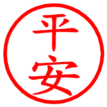 [朱肉の色]を選び、入力窓に“平安”と入力して[生成]ボタンを押すと、印影が更新され、リンクから電子印鑑(デジタル印影)がダウンロードできます。 電子印鑑「平安」の作り方文字表示が変なときや、文字バランスが悪いときは[字形切替]のチェックボックスでON/OFFを切り替え[生成]しなおしてください。 生成される画像は通常の印影「平安.png」と、にじみを表現した少し太めの印影「平安B.png」の背面透過PNG形式2種と、鮮明なPDF形式の印影「平安.pdf」の計3種類です。 朱肉の微妙な色の違いを7色で表現しました。デフォルト(左端)は、JISが定めた朱肉の色のマンセル値(7.5R 5/14)をRGB値(217,66,54)に変換したものになっています。 「電子透かし」にチェックを入れて[生成]ボタンを押すと、タイムスタンプを電子透かしとして埋め込んだセキュアな電子印鑑が作れます。詳細は別ページの「タイムスタンプと電子透かし」でご覧ください。 平安さんの日付印が作れます。「日付スタンプメーカー」は、社内向けの書類に利用されることの多い日付印(データ印)が無料で作れるWebアプリケーションです。中段に日付が入り、上段と下段は、ともに8文字まで文字が入ります。 ![]() 古代文字で落款印が作れます。「落款スタンプメーカー」で作品を引き立たせる落款印が作れます。