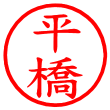 [朱肉の色]を選び、入力窓に“平橋”と入力して[生成]ボタンを押すと、印影が更新され、リンクから電子印鑑(デジタル印影)がダウンロードできます。 電子印鑑「平橋」の作り方文字表示が変なときや、文字バランスが悪いときは[字形切替]のチェックボックスでON/OFFを切り替え[生成]しなおしてください。 生成される画像は通常の印影「平橋.png」と、にじみを表現した少し太めの印影「平橋B.png」の背面透過PNG形式2種と、鮮明なPDF形式の印影「平橋.pdf」の計3種類です。 朱肉の微妙な色の違いを7色で表現しました。デフォルト(左端)は、JISが定めた朱肉の色のマンセル値(7.5R 5/14)をRGB値(217,66,54)に変換したものになっています。 「電子透かし」にチェックを入れて[生成]ボタンを押すと、タイムスタンプを電子透かしとして埋め込んだセキュアな電子印鑑が作れます。詳細は別ページの「タイムスタンプと電子透かし」でご覧ください。 平橋さんの日付印が作れます。「日付スタンプメーカー」は、社内向けの書類に利用されることの多い日付印(データ印)が無料で作れるWebアプリケーションです。中段に日付が入り、上段と下段は、ともに8文字まで文字が入ります。 ![]() 古代文字で落款印が作れます。「落款スタンプメーカー」で作品を引き立たせる落款印が作れます。
