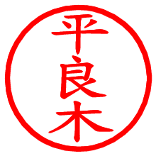 [朱肉の色]を選び、入力窓に“平良木”と入力して[生成]ボタンを押すと、印影が更新され、リンクから電子印鑑(デジタル印影)がダウンロードできます。 電子印鑑「平良木」の作り方文字表示が変なときや、文字バランスが悪いときは[字形切替]のチェックボックスでON/OFFを切り替え[生成]しなおしてください。 生成される画像は通常の印影「平良木.png」と、にじみを表現した少し太めの印影「平良木B.png」の背面透過PNG形式2種と、鮮明なPDF形式の印影「平良木.pdf」の計3種類です。 朱肉の微妙な色の違いを7色で表現しました。デフォルト(左端)は、JISが定めた朱肉の色のマンセル値(7.5R 5/14)をRGB値(217,66,54)に変換したものになっています。 「電子透かし」にチェックを入れて[生成]ボタンを押すと、タイムスタンプを電子透かしとして埋め込んだセキュアな電子印鑑が作れます。詳細は別ページの「タイムスタンプと電子透かし」でご覧ください。 平良木さんの日付印が作れます。「日付スタンプメーカー」は、社内向けの書類に利用されることの多い日付印(データ印)が無料で作れるWebアプリケーションです。中段に日付が入り、上段と下段は、ともに8文字まで文字が入ります。 ![]() 古代文字で落款印が作れます。「落款スタンプメーカー」で作品を引き立たせる落款印が作れます。