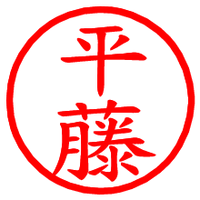 [朱肉の色]を選び、入力窓に“平藤”と入力して[生成]ボタンを押すと、印影が更新され、リンクから電子印鑑(デジタル印影)がダウンロードできます。 電子印鑑「平藤」の作り方文字表示が変なときや、文字バランスが悪いときは[字形切替]のチェックボックスでON/OFFを切り替え[生成]しなおしてください。 生成される画像は通常の印影「平藤.png」と、にじみを表現した少し太めの印影「平藤B.png」の背面透過PNG形式2種と、鮮明なPDF形式の印影「平藤.pdf」の計3種類です。 朱肉の微妙な色の違いを7色で表現しました。デフォルト(左端)は、JISが定めた朱肉の色のマンセル値(7.5R 5/14)をRGB値(217,66,54)に変換したものになっています。 「電子透かし」にチェックを入れて[生成]ボタンを押すと、タイムスタンプを電子透かしとして埋め込んだセキュアな電子印鑑が作れます。詳細は別ページの「タイムスタンプと電子透かし」でご覧ください。 平藤さんの日付印が作れます。「日付スタンプメーカー」は、社内向けの書類に利用されることの多い日付印(データ印)が無料で作れるWebアプリケーションです。中段に日付が入り、上段と下段は、ともに8文字まで文字が入ります。 ![]() 古代文字で落款印が作れます。「落款スタンプメーカー」で作品を引き立たせる落款印が作れます。