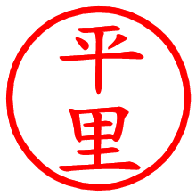 [朱肉の色]を選び、入力窓に“平里”と入力して[生成]ボタンを押すと、印影が更新され、リンクから電子印鑑(デジタル印影)がダウンロードできます。 電子印鑑「平里」の作り方文字表示が変なときや、文字バランスが悪いときは[字形切替]のチェックボックスでON/OFFを切り替え[生成]しなおしてください。 生成される画像は通常の印影「平里.png」と、にじみを表現した少し太めの印影「平里B.png」の背面透過PNG形式2種と、鮮明なPDF形式の印影「平里.pdf」の計3種類です。 朱肉の微妙な色の違いを7色で表現しました。デフォルト(左端)は、JISが定めた朱肉の色のマンセル値(7.5R 5/14)をRGB値(217,66,54)に変換したものになっています。 「電子透かし」にチェックを入れて[生成]ボタンを押すと、タイムスタンプを電子透かしとして埋め込んだセキュアな電子印鑑が作れます。詳細は別ページの「タイムスタンプと電子透かし」でご覧ください。 平里さんの日付印が作れます。「日付スタンプメーカー」は、社内向けの書類に利用されることの多い日付印(データ印)が無料で作れるWebアプリケーションです。中段に日付が入り、上段と下段は、ともに8文字まで文字が入ります。 ![]() 古代文字で落款印が作れます。「落款スタンプメーカー」で作品を引き立たせる落款印が作れます。
