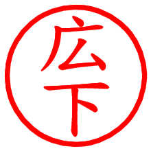 [朱肉の色]を選び、入力窓に“広下”と入力して[生成]ボタンを押すと、印影が更新され、リンクから電子印鑑(デジタル印影)がダウンロードできます。 電子印鑑「広下」の作り方文字表示が変なときや、文字バランスが悪いときは[字形切替]のチェックボックスでON/OFFを切り替え[生成]しなおしてください。 生成される画像は通常の印影「広下.png」と、にじみを表現した少し太めの印影「広下B.png」の背面透過PNG形式2種と、鮮明なPDF形式の印影「広下.pdf」の計3種類です。 朱肉の微妙な色の違いを7色で表現しました。デフォルト(左端)は、JISが定めた朱肉の色のマンセル値(7.5R 5/14)をRGB値(217,66,54)に変換したものになっています。 「電子透かし」にチェックを入れて[生成]ボタンを押すと、タイムスタンプを電子透かしとして埋め込んだセキュアな電子印鑑が作れます。詳細は別ページの「タイムスタンプと電子透かし」でご覧ください。 広下さんの日付印が作れます。「日付スタンプメーカー」は、社内向けの書類に利用されることの多い日付印(データ印)が無料で作れるWebアプリケーションです。中段に日付が入り、上段と下段は、ともに8文字まで文字が入ります。 ![]() 古代文字で落款印が作れます。「落款スタンプメーカー」で作品を引き立たせる落款印が作れます。